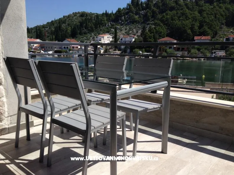 Komfortní, moderní, dobře vybavený, klimatizovaný apartmán, 4 *, Wi-Fi v prvním patře domu v patře s terasou a balkonem s výhledem na pláž. Oblázková pláž 30 m, Delta Neretvy 1 km. V blízkosti ostrova a poloostrov