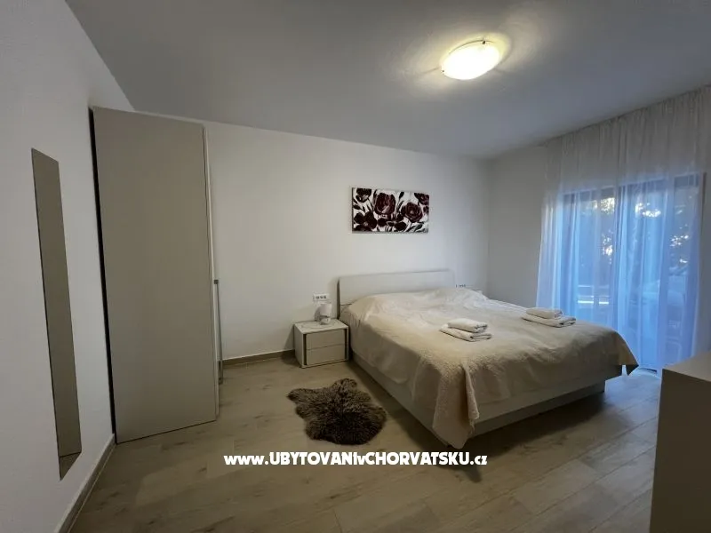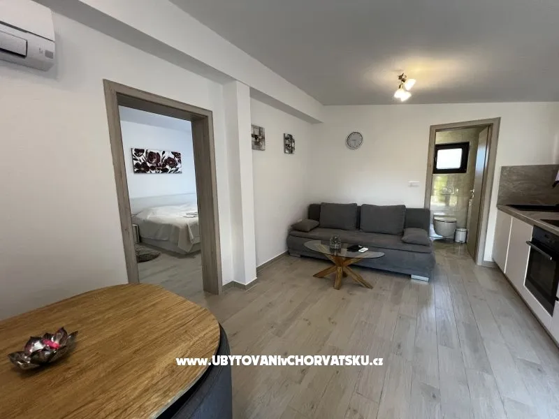 Apartmán Bougainvillea se skládá z obývacího pokoje, jídelny, kuchyně, koupelny a terasy, může ubytovat 4 osoby. Nachází se 200 m od moře (od nábřeží) a 500 m od písečné pláže Bijeca.