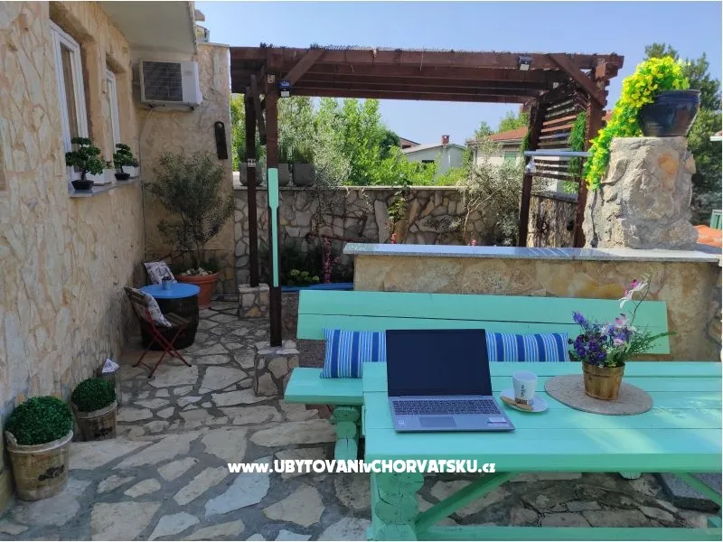 Hezký přízemní apartmán v rodinném domě, příjemné okolí plné zeleně, velká terasa, zahrada, grill, parkoviště, klimatizace, TV, uvaziště pro člun. Vše pro klidnou rodinnou dovolenou