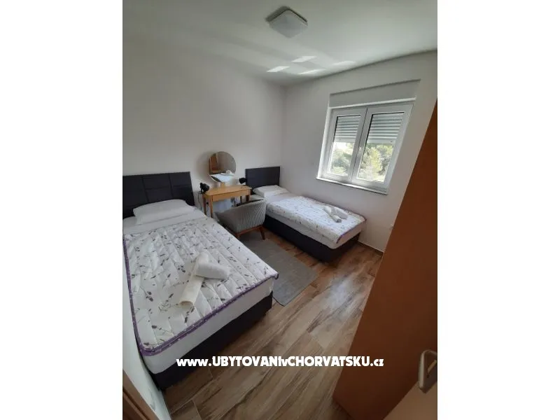 Apartmán "DAVID" je nově postavený a moderně vybavený prostor, který se nachází ve druhém patře malého bytového domu. Z balkonu apartmánu je krásný výhled na moře a staré město. Byt má kromě balkonu dvě ložnice, koupelnu, obývací pokoj s kuchyní.Vše je zcela nové a velmi dobře vybavené. Primošten je krásné středomořské místo, mimořádně příjemné pro dovolené a pobyty,...
