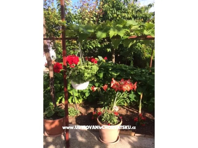 Každý apartmán má zařízenou kuchyň, plynový sporák, ledničku, koupelnu s vanou a wc, ložnici, balkon nebo terasu se stolem s židlemi, TV-SAT, vlastní vchod, žehličku, fén, přístroj na filtrovanou kávu. Možnost použití pračky a telefonu za doplatek. Výměna lůžkovin každý 7dnů, kuchyňských útěrek každé 3 dny. V apartmánech je dovolené kouřit. Grill a parkoviště ve dvoře. Domácí zvířata za doplatek.