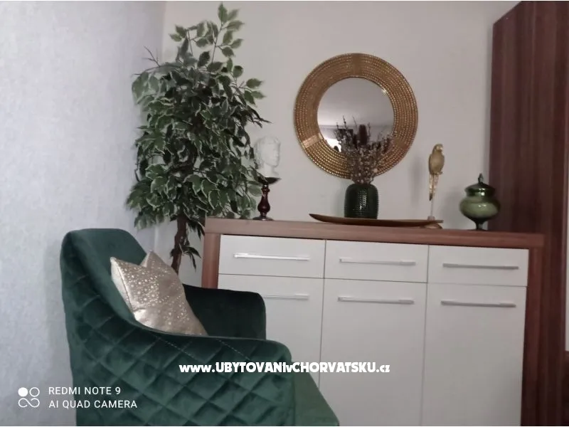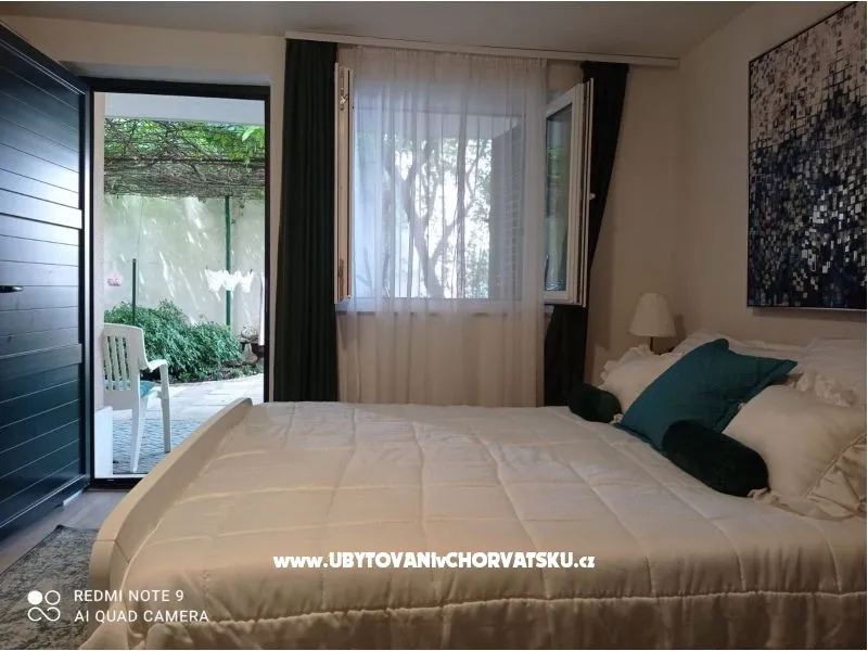 Vyjímečná příležitost, byt s vlastním dvorkem! V letovisku Baška Voda, na jižní straně rodinného domu, v přízemí, se nachází okouzlující apartmán 36 m2, kapacita 2 + 1 osoba, se dvorem cca 80 m2, uzpůsobený pro pohodlný a relaxační pobyt. Kromě toho, že má 2 koupelny, je apartmán vybaven veškerým potřebným zařízením pro příjemnou dovolenou, včetně klimatizace, Hi-fi a kabelové TV, indukční varné desky, digestoře, myčky, pračky, trezoru. Pro větší pohodlí používáme ve vybavení bytu pouze saténové povlečení ... Největší výhodou bytu je dvůr o velikosti 80 m2, který má samostatný vchod a patří pouze uživatelům apartmánu a poskytuje absolutní bezpečí pro děti. Tradiční dalmatský dvůr je vysázen středomořskými rostlinami a dlážděná část je vybavena lehátky, zahradním nábytkem a grilem. Obývací pokoj s jídelnou a ložnice jsou přímo propojeny se dvorem. Parkovací stání je na severní straně budovy.Pokud toužíte po pocitu pohodlí domova, klidné dovolené ve stínu vinné révy, kterou zde k odpočinku vypěstovaly generace, jsme si jisti, že neuděláte chybu výběrem tohoto apartmánu pro vaší dovolenou v Chorvatsku.