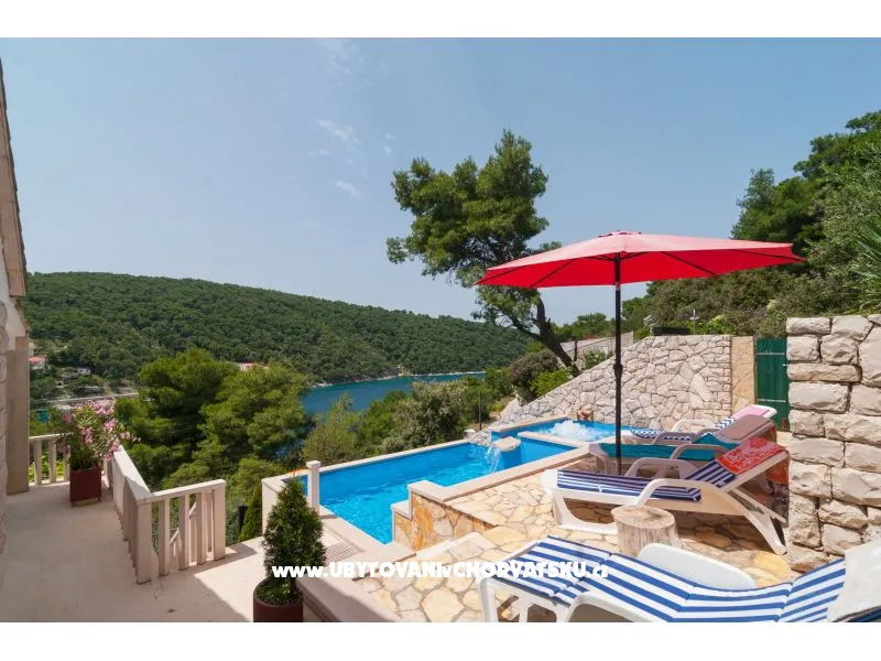 Prostorný dům s bazénem a vířivkou v městečku Pučišća na ostrově Brač