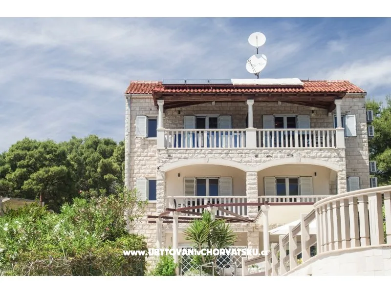 Dům se soukromým bazénem 75 m2, devíti klimatizovanými apartmány a soukromým bezplatným parkováním ve stínu borového lesa se nachází v klidné části Sumartinu s krásným výhledem na moře, ostrovy, Biokovo, Hvar a Pelješac . Objekt se nachází přímo u pláže, dvacet metrů od moře a je orientován na jih. Celkem devět klimatizovaných apartmánů pojme až 34 osob. Apartmány jsou...