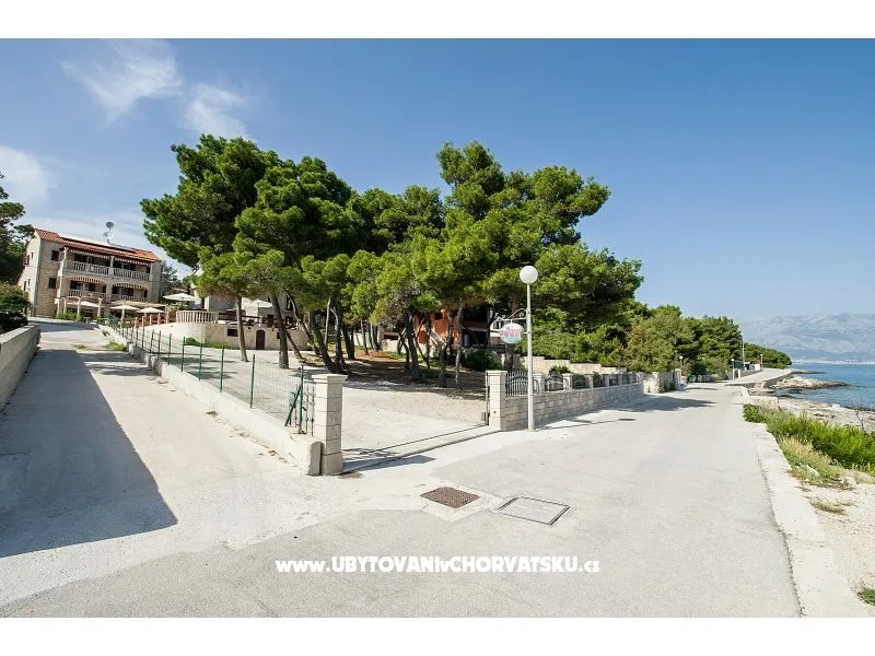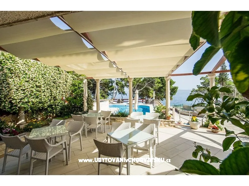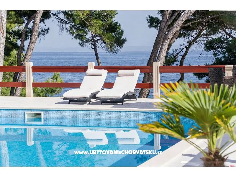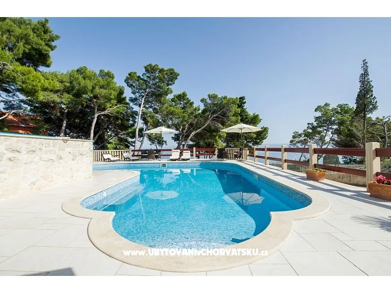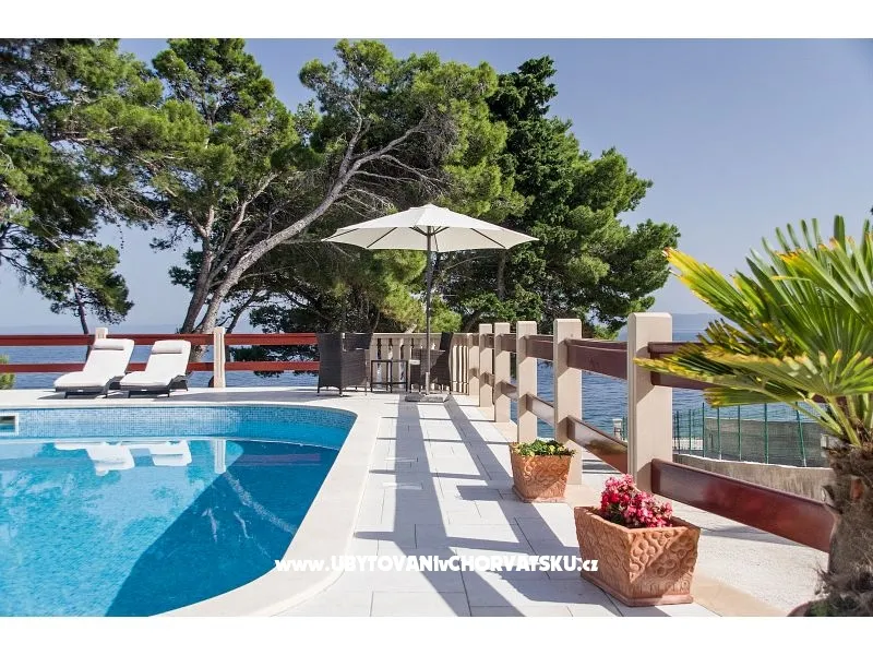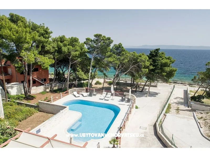 Dům se soukromým bazénem 75 m2, devíti klimatizovanými apartmány a soukromým bezplatným parkováním ve stínu borového lesa se nachází v klidné části Sumartinu s krásným výhledem na moře, ostrovy, Biokovo, Hvar a Pelješac . Objekt se nachází přímo u pláže, dvacet metrů od moře a je orientován na jih. Celkem devět klimatizovaných apartmánů pojme až 34 osob. Apartmány jsou rozděleny do pater: čtyři v prvním patře a čtyři ve druhém, přičemž jedno se nachází v přízemí. V závislosti na dostupnosti vám nabídneme byty, které jsou v danou chvíli volné. Ceny jsou v červnu a září nižší, proto nás neváhejte kontaktovat pro nabídky na tato období. Na vyžádání k dispozici pračka. Restaurace, kavárny, supermarkety, pošta a centrum města jsou asi 500 metrů daleko. Ubytování v 1 patře: 1. Apartmán 2+2: 50 m2, 1x ložnice s manželskou postelí, dvě lůžka/křeslo v obývacím pokoji, kuchyň, koupelna, soukromá terasa orientovaná na jih; 2. Apartmán 2+2: 50 m2, 1x ložnice s manželskou postelí, dvě lůžka/křesla v obývacím pokoji, kuchyně, modernizovaná koupelna, soukromá terasa orientovaná na jih; 3. Apartmán 2+0: 30 m2, 1x ložnice s manželskou postelí, obývací pokoj, kuchyně, modernizovaná koupelna, soukromý malý balkon orientovaný na sever; 4. Apartmán 5+0: 70 m2, 2x ložnice (a: manželská postel + postel pro jednu osobu; b: manželská postel), obývací pokoj, kuchyň, koupelna, soukromá terasa orientovaná na západ. Ubytování ve 2. patře: 5. Apartmán 2+2: 50 m2, 1x ložnice s manželskou postelí, dvě lůžka/křeslo v obývacím pokoji, kuchyň, koupelna, soukromá terasa orientovaná na jih; 6. Apartmán 2+2: 50 m2, 1x ložnice s manželskou postelí, dvě lůžka/křeslo v obývacím pokoji, kuchyně, modernizovaná koupelna, soukromá terasa orientovaná na jih; 7. Apartmán 2+0: 30 m2, 1x ložnice s manželskou postelí, obývací pokoj, kuchyně, modernizovaná koupelna, soukromý malý balkon orientovaný na sever; 8. Apartmán 5+0: 70 m2, 2x ložnice (a: manželská postel + postel pro jednu osobu; b: manželská postel), obývací pokoj, kuchyň, koupelna, soukromá terasa orientovaná na západ. Ubytování v přízemí: 9. Apartmán 4+0: cca 45 m2, 2x ložnice (a: manželská postel; b: 2x samostatné lůžko), moderní kuchyně, obývací pokoj, koupelna s hydromasáží, soukromá terasa orientovaná na jih. V devíti klimatizovaných apartmánech je možné ubytovat až 34 osob. Apartmány jsou rozděleny na podlaží: čtyři v prvním patře a čtyři na druhém, zatímco jeden je v přízemí. V závislosti na dostupnosti vám nabídneme apartmány, které jsou v daném okamžiku k dispozici. Ceny jsou v červnu a září nižší, proto nás můžete kontaktovat v případě nabídek pro tato období. Ve všech apartmánech je nová kuchyňská linka, nový obrobek a nová umyvadlová mísa, zatímco pět apartmánů je zcela přepracováno; takže byty byly modernizovány. Koupelny v dalších čtyřech bytech budou přepracovány na další (2020) období. K dispozici je velká společná terasa před bazénem s lehátky, stoly a židlemi, které si můžete vychutnat v očích a před bazénem. Pračka je k dispozici na vyžádání. Restaurace, kavárny, supermarkety, pošta a centrum jsou vzdálené asi 500 metrů. Ubytování v prvním patře: 1. Byt 2+2: 50 m2, 1x ložnice s manželskou postelí, dvě lůžka / křesla v obývacím pokoji, kuchyň, koupelna, terasa směřující na jih; 2. Byt 2+2: 50 m2, 1x ložnice s manželskou postelí, dvě lůžka / křesla v obývacím pokoji, kuchyň, moderní koupelna, terasa orientovaná na jih; 3. Apartmán 2+0: 30 m2, 1x ložnice s manželskou postelí, obývací pokoj, kuchyň, moderní koupelna, malý soukromý malý balkon orientovaný na sever; 4. Apartmán 5+0: 70 m2, 2x ložnice (a: dvoulůžko + jednolůžko, b: dvoulůžko), obývací pokoj, kuchyň, koupelna, terasa orientovaná na západ. Ubytování ve 2. patře: 5. Byt 2+2: 50 m2, 1x ložnice s manželskou postelí, dvě lůžka / křesla v obývacím pokoji, kuchyň, koupelna, terasa orientovaná na jih; 6. Byt 2+2: 50 m2, 1x ložnice s manželskou postelí, dvě lůžka / křesla v obývacím pokoji, kuchyň, moderní koupelna, terasa orientovaná na jih; 7. Apartmán 2+0: 30 m2, 1x ložnice s manželskou postelí, obývací pokoj, kuchyň, moderní koupelna, malý soukromý malý balkon orientovaný na sever; 8. Byt 5+0: 70 m2, 2x ložnice (a: dvoulůžko + jednolůžko, b: dvoulůžko), obývací pokoj, kuchyň, koupelna, terasa orientovaná na západ. Přízemní ubytování: 9. Apartmán 4+0: cca 45 m2, 2x ložnice (a: dvoulůžko, b: 2x samostatné lůžko), moderní kuchyň, obývací pokoj, koupelna s hydromasážou, terasa orientovaná na jih.