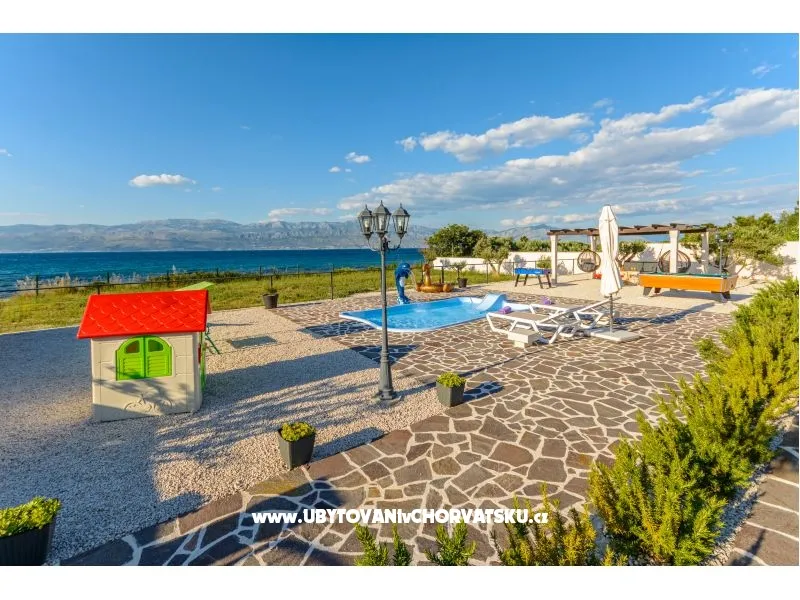 Vila se nachází v Supetaru na ostrově Brač, nachází se na samotě se soukromým vchodem k moři. Před domem je trávník a vybavení pro děti a bazén a gril. Výhled z domu je na moře a Split. Do centra města Supetar a restaurací můžete dojít po promenádě podél moře. Ve vzdálenosti 500m najdete Lidl a supermarket Konzum.