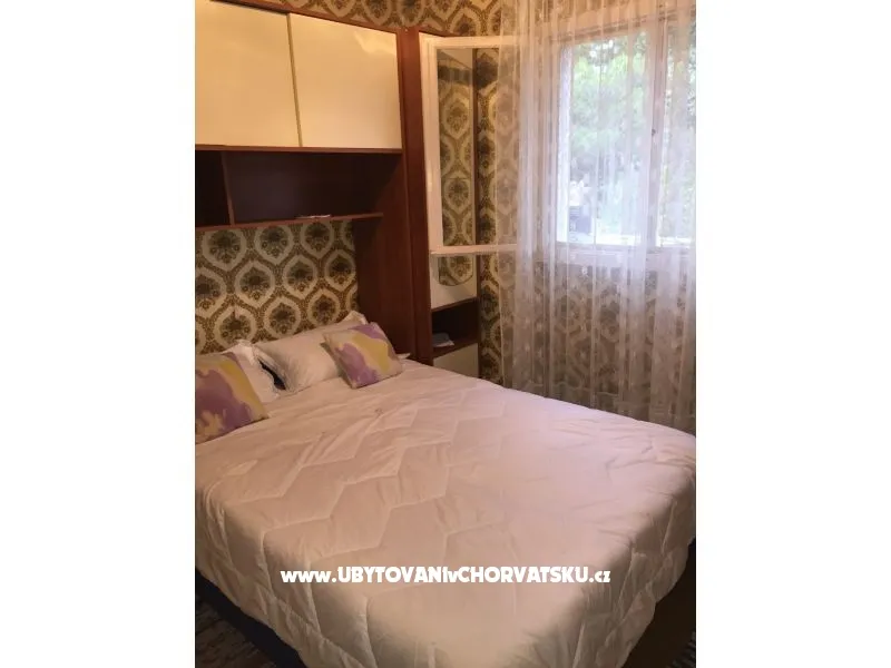 Apartmán se nachází v klidné zátoce u moře. Apartmán má tri dvoulůžkové ložnice, kuchyň je vybavena vším, co potřebujete. Když vyjdete z kuchyně je krytá oblast, kde je stůl, židle, TV se satelitním příjmem, a v blízkosti gril. Po po schodech dolů projdete zahradou vedle dětské houpačky, venkovní sprchy a dostanete se ke dveřím, která nás oddělují od pláže. Na pláži je slunečník se stolem a židlemi a lehátky. Hned vedle pláže je možné kotvit malý člun. Jako doplněk můžete využít myčku a pračku. Každý pokoj má TV, v koupelně je vysoušeč vlasů a před domem jsou terasy 25 m2 se stolem a židlemi k použití. To vše je zahrnuto v ceně, stejně jako klimatizace, pobytová taxa, parkoviště, internet. Můžete pozvat (sdělte nám prosím předem) své přátele na posezení nebo stravování v apartmánu po dobu 1-2 hodin a na pláži déle. Přihlášení do apartmánu po 14 hodin, odjezd do 9:00 Příplatek 10 EUR pro více než 4 dospělé v apartmánu. Apartmán je pro 4 dospělé a 2 děti.