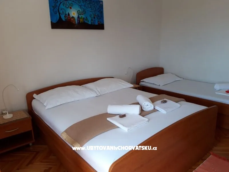 Velikost pokoje je 19 m2 a nachází se v prvním patře.Pokoj s výhledem na jih s výhledem na moře.Pokoj má dvě lůžka (manželská postel) a možností přistýlky. Je vybaven LED TV diagonálními 82cm s TV se satelitním příjmem systémem. Na velké společné terasy (