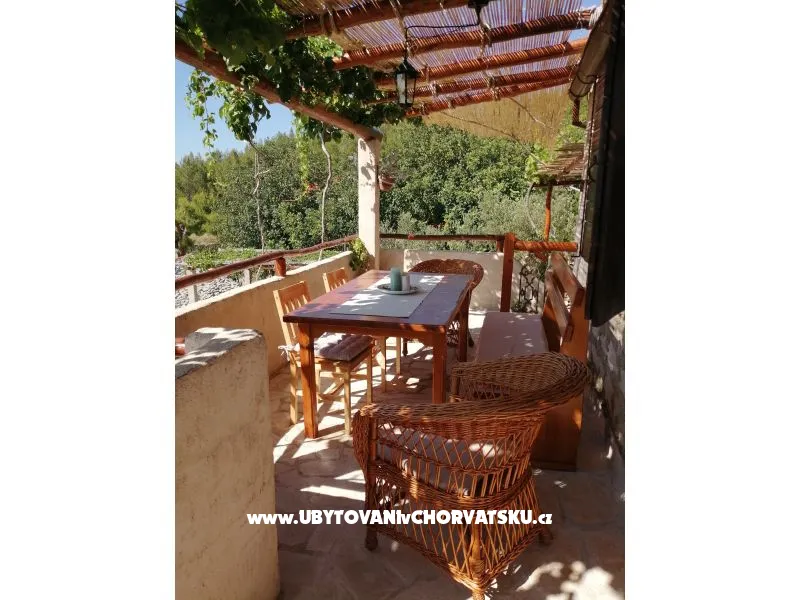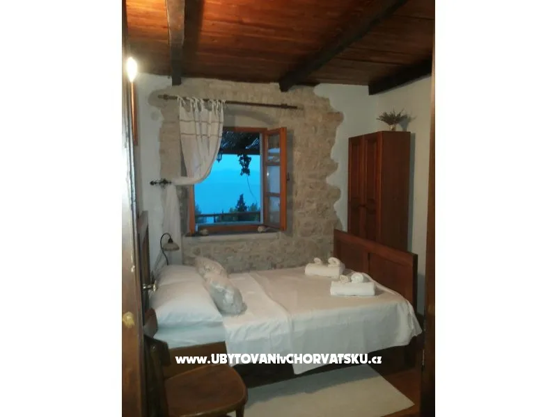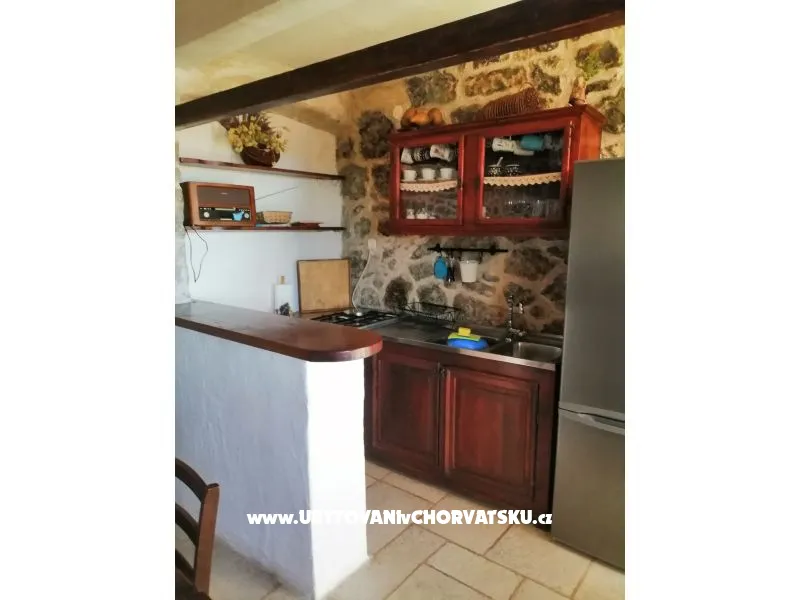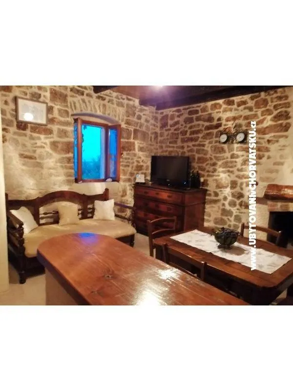 Pokud chcete strávit svoji dovolenou daleko od hluku a davů lidí, a chete si opravdu odpočinout, navštívte Gromin Dolac a náš autentický dalmatský kamenný dům. Gromin Dolac je osada na jižní straně ostrova Hvar, pod kterou je řada perfektně čistých azurově modrých pláží. Gromin Dolac je jen 3 km od větší turistické osady Zavala. Zavala může být dosažena prostřednictvím malého tunelu od vesnice Pitve. Zároveň Gromin Dolac se nachází ve střední části ostrova a slouží i jako vynikající základna k prozkoumání celého ostrova. Náš kamenný dům je více jak sto let starý, ale byl zrekonstruován tak, aby splňoval požadavky na moderní bydlení, s použitím co nejvíce přírodních materiálů, jako je kámen a dřevo. Dům se skládá z kuchyně s jídelnou a obývacího pokoj s krbem (grilem), dvou ložnic, úložného prostoru, předsíně a koupelny se sprchovým koutem. V přední části domu je velká terasa s krásným výhledem na moře a ostrovy Šćedro, Korčula a poloostrov Pelješac, parkovací místo a chodník. Je vhodný pro rodiny s dětmi. 10 min. chůze na nejbližší pláž.