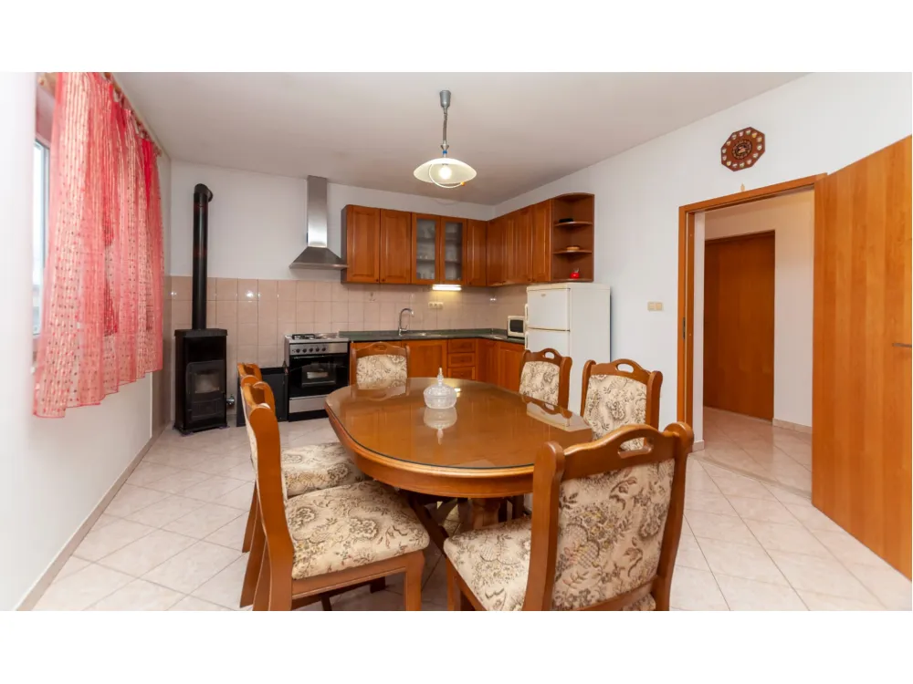 Dům se nachází v krásné přírodě s výhledem na okolní kopce a hory. Má jednu ložnici s manželskou postelí, dále dvě oddělené místnosti s jednolůžky, koupelnu se sprchovým koutem, kuchyň a velký obývací pokoj s rozkládací pohovkou. Velká krytá terasa se sto