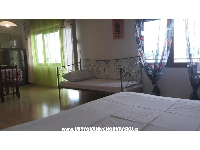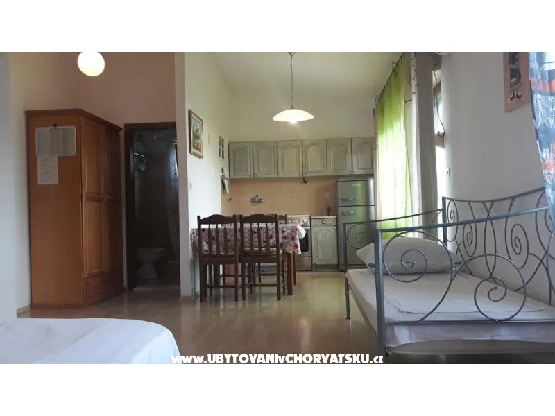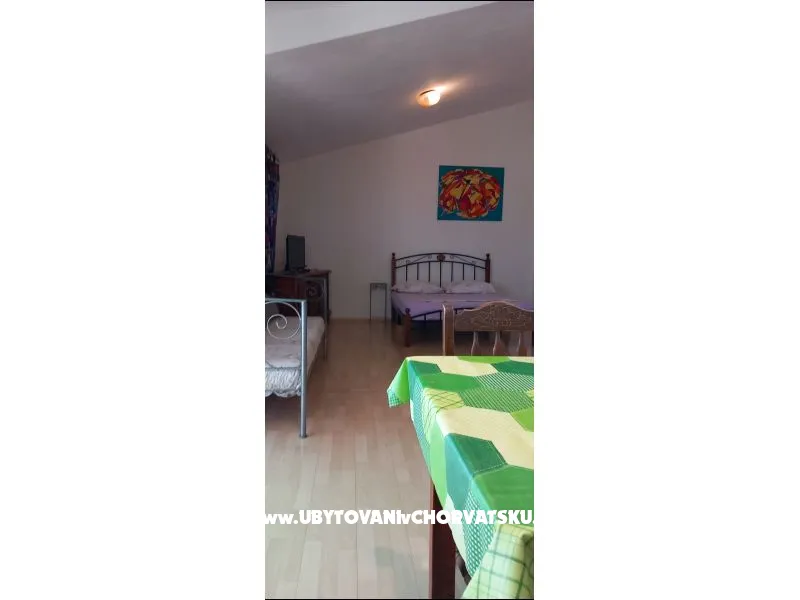 Garsonka - Studio apartmán na půli cesty mezi Splitem a Makarskou (Split 35 km; Makarská 25 km), od městečka Omiš 8 km. Apartmán se nachází v klidné a tiché lokalitě 250m od pláže s krásným výhledem na moře a ostrov Brač.