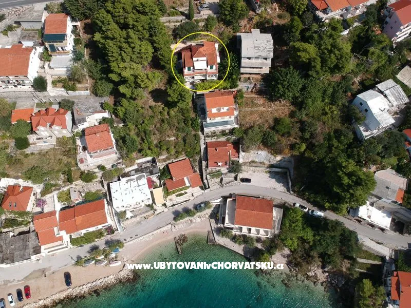 apartmán v 1. patře s klimatizací a s přímým výhledem na moře, ložnice s manželským lůžkem a lůžkem pro 3. osobu, oddělená kuchyňka s chladničkou, koupelna s vanou a WC, balkón s posezením a nádherným výhledem na moře.