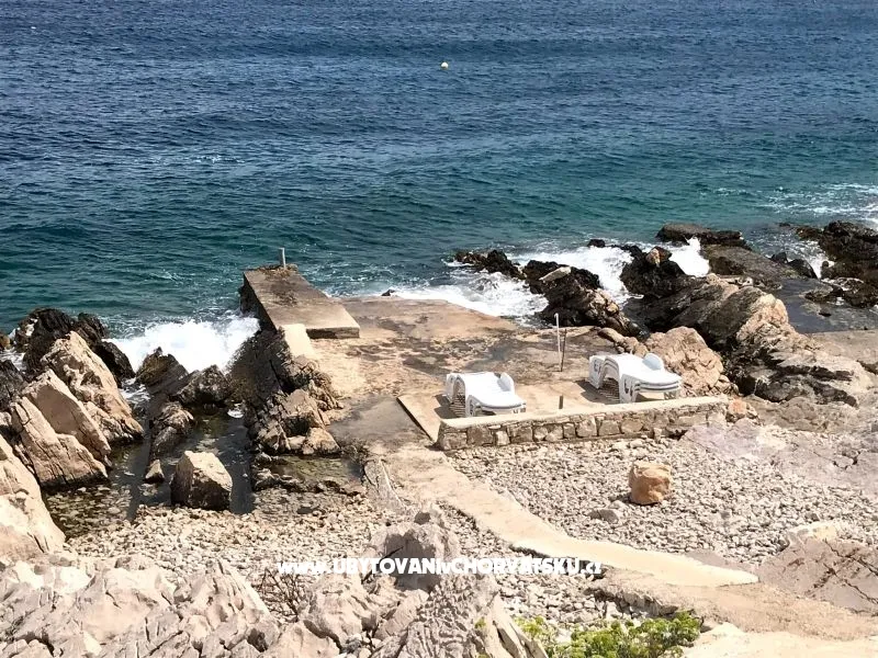 Dům se nachází v zátoce Donja Krušica, kam se dostanete z Donje Selo a je to ideální místo pro pohodovou dovolenou. Do zátoky se dostanete po cestě Rogac - Grohote - Donje Selo a pak úzkou cestou k domu. Obchod je v obci Rogac, takže byste se měli zásobit tam. Kromě moderně zařízených apartmánů máme i zábavu pro děti a mládež - ping pong, stolní fotbal, šipky, houpačky, . Každý apartmán má vlastní gril.