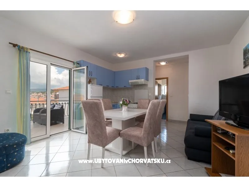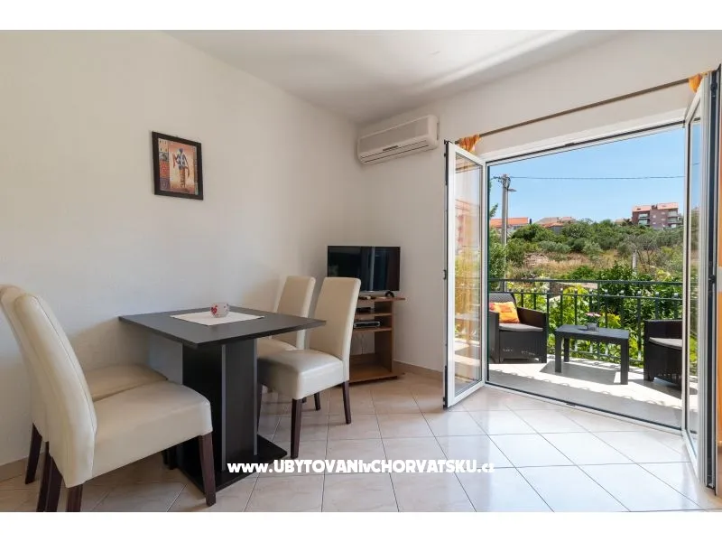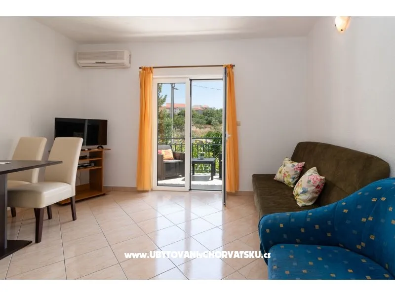 150 m od pláže, první patro, terasa, výhled na moře, výhled do zeleně, 1 ložnice, klimatizace, satelitní TV, pračka (sdílená), wi-fi (zdarma), soukromá parkoviště