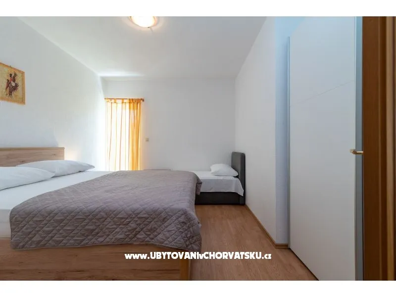150 m od pláže, první patro, 2 balkony, výhled do zeleně, 1 ložnice, klimatizace, TV SAT, pračka (sdílená), wi-fi (zdarma), soukromá parkoviště, zahrada