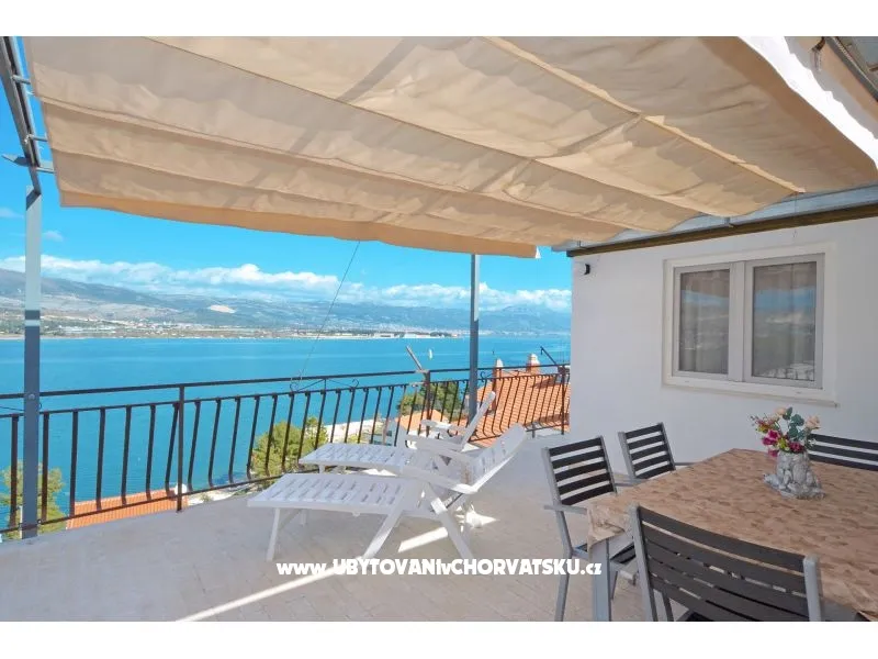 Plocha: 72 m2+42 m2 /terasa výhled na moře, 2 ložnice, 1 koupelna, SAT TV, venkovní gril, 1 soukromé parkoviště, 1. patro, 70 m od oblázkové pláže, pračka u majitele za příplatek 5 €