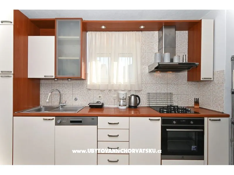 Za rezervaci platíte 35% zálohu + rezervační poplatek. Zbytek se platí při příjezdu do zařízení. Minimální délka pobytu je 3 noci. V hlavní sezóně je minimální délka pobytu 5 noci. Apartmány Ria se nachází 70 m od pláže (druh pláže: betonová, štěrková). Oba apartmány mají vlastní terasu s výhledem na moře. Dětská postýlka na vyžádání. Venkovní vybavení: venkovní gril, příjezd k objektu autem, soukromé parkoviště, garáž, zahrada Upozornění: Jedno parkovací místo na apartmán