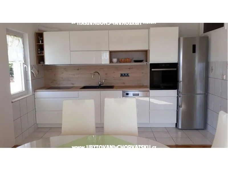 Lucija, 130m2, v prvním patře domu, pro 8 osob. Apartmán má 3ložnice, kuchyni, obývací pokoj, 2 wc a koupelnu. Jedna ložnice s manželksými lůžky.