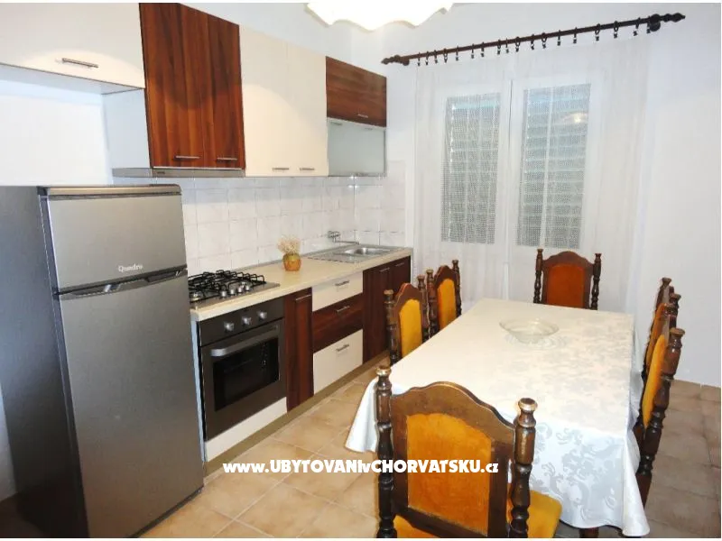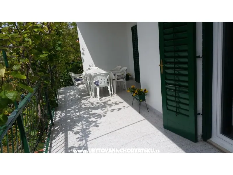 Všechny apartmány mají kuchyni, koupelnu, terasu, parkování ve stínu. Nacházíme se 80 metrů od krásné oblázkové pláže. Všechny apartmány jsou na jižní straně. Dům má velkou travnatou zahradu ve stínu, vhodné pro děti. Nabízíme mnoho sportovně-rekreačních možností. Majitelé jsou vstřícní a připraveni Vám pomoci. K dispozici uvaziště člunu.