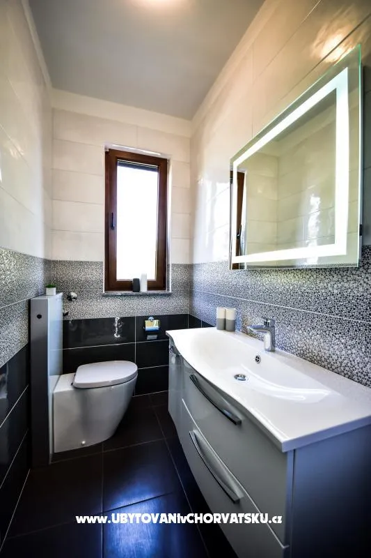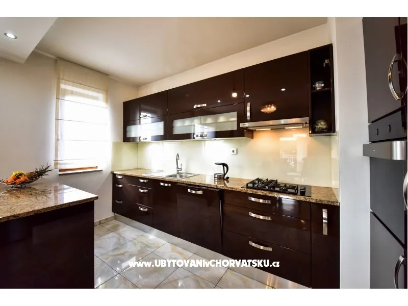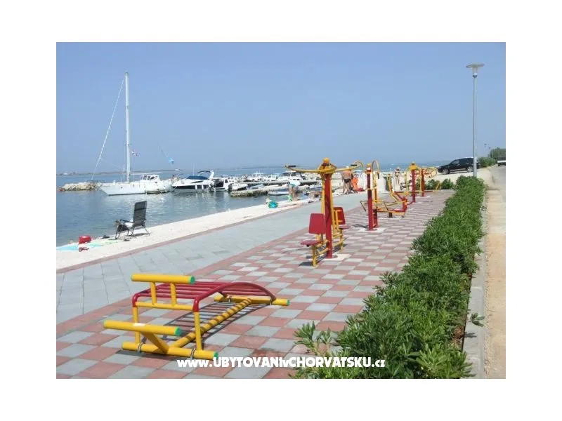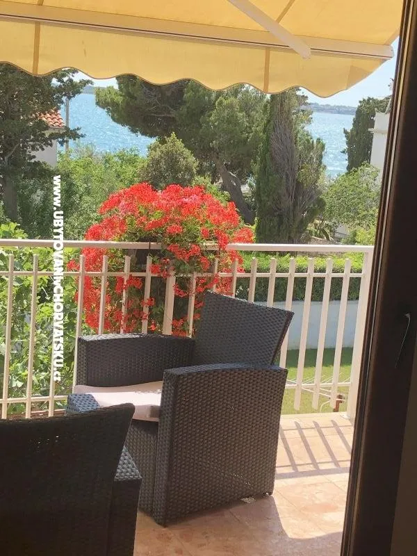 Apartmán v prvním patře rodinného domu, 20 m od pláže, klimatizovaný. Moderně zařízený, s plně vybavenou kuchyní s myčkou a troubou, obývací pokoj, terasa s výhledem na moře. Wifi zdarma. 2 ložnice, koupelna s pračkou, samostatné WC. Velký dvůr s parkováním, gril.