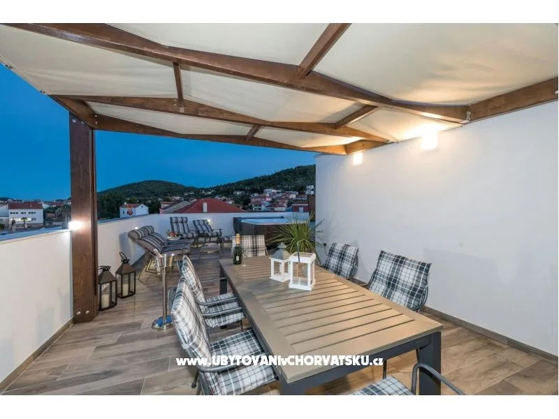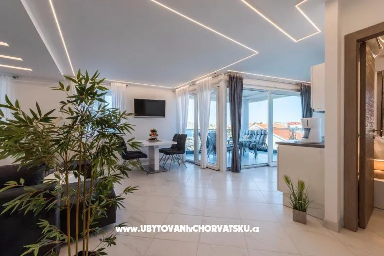 2 luxusní apartmány se střešní terasou a vířivkou. Nejlepší výhled na moře a město Zadar. Apartmány jsou nové a moderně zařízené, v centru města a 5 m od moře.