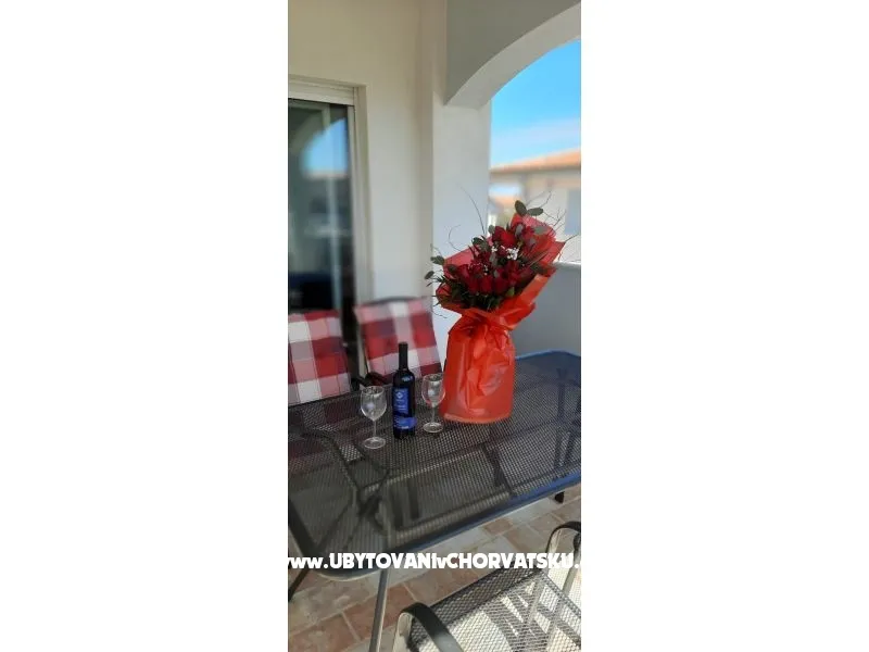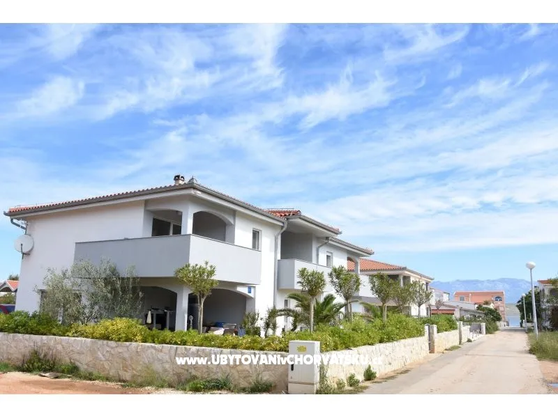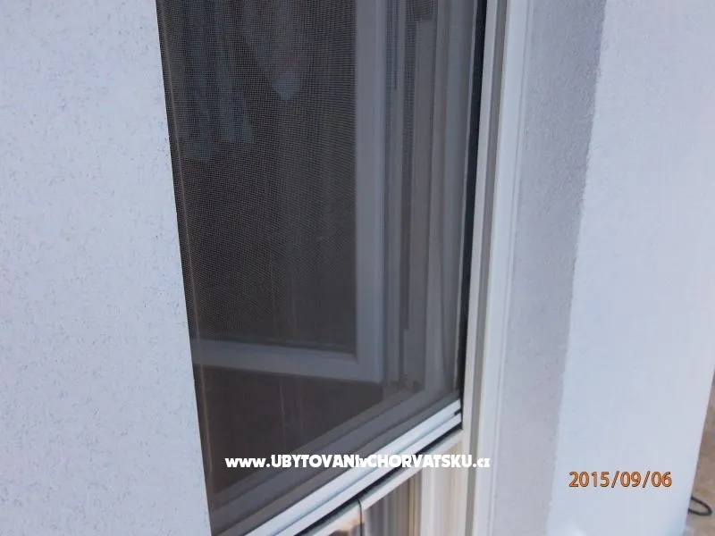 Apartmánový dům byl postaven v roce 2013. Je zateplený, okna mají elektrickou žaluzii a moskytiéru. Voda je ohřívána solárním systémem, který je v případě, že by slunce nesvítilo, doplněn elektrickým ohřevem. Dům má vlastní parkoviště pro 5 automobilů, parkoviště je umístěno tak, aby Váš automobil byl celý den chráněn před sluncem. Na pozemku, který patří k domu je velký gril, který lze používat. Na pozemku je vytvořena zahrada s kamennou terasou a posezením pro Vaši relaxaci. Apartmány jsou umístěny v prvním patře. Každý apartmán má vlastní terasu. K apartmánu je jedno parkovací místo. Apartmán je vybavený klimatizací, okno v ložnici a do koupelny má moskytiéru. Všechna okna jsou vybavená elektrickými roletami. V obýváku s kuchyní je TV momentálně s českou, chorvatskou a německou TV. TV je možno připojit na HDMI nebo USB. V ložnici je jedna dělená skříň s poličkami a věšáky. Kuchyně je vybavená sklokeramickou deskou, elektrickou troubou, ledničkou, mikrovlnou troubou. Samozřejmostí jsou věci jako talíře, skleničky, hrnce, příbory, kávovar… Dolní apartmány mají 80m2 dvě ložnice s obývákem a kuchyní. Oba apartmány maji koupelnu Jeden apartmán má dvě klimatizace, druhý jednu. oba apartmány mají samostatnou terasu pro slunění s lehátky. Tyto apartmány jsou bezbariérové. Do ceny není započítán závěrečný úklid 80€.