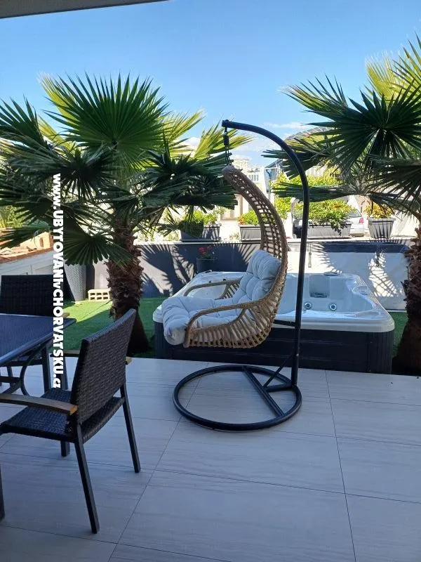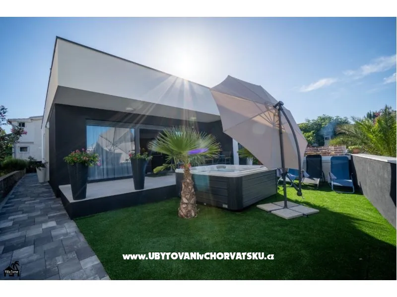 Dům je jednopodlažní, nově zařízený, tři ložnice, kuchyň a obývací pokoj, koupelna s pračkou. Na terase je jacuzzi. Dům pojme max. 6 lidí. Parkování zajištěno. Vše je v blízkosti - restaurace, obchody, promenáda. Pláž 350m.