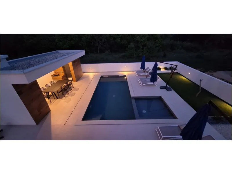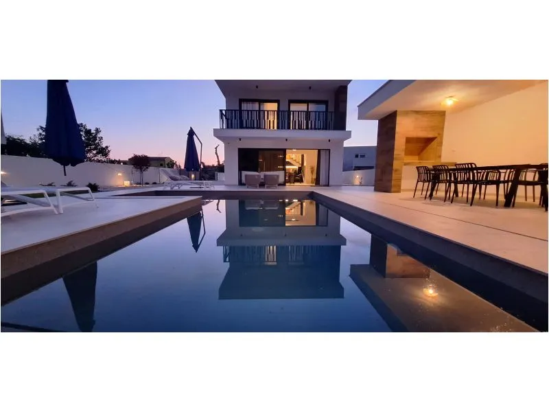 Nově postavená vila v klidné slepé ulici se 4 ložnicemi a koupelnami, bazénem a letní kuchyní s grilem. Díky tomu všemu je tato vila ideálním místem pro ty, kteří milují letní posezení pod širým nebem, večeře pod hvězdami a ranní klid.